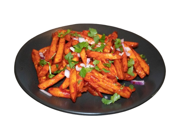 Flavorful fries tossed in a spicy tomato and coriander sauce, a Kenyan street-food favorite.